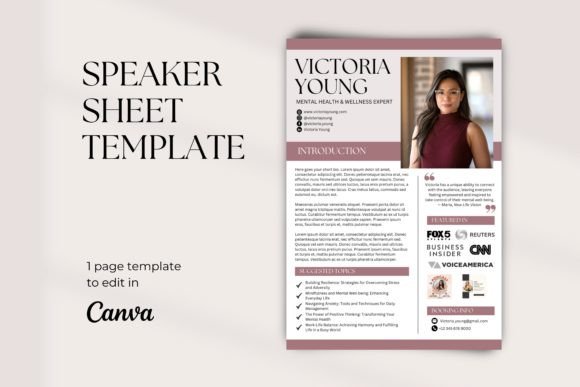 The beauty of this resume Canva Template is that you can have a polished, professional media kit ready to send out in just ten minutes. You don’t need any technical design background; if you can drag and drop an image or click to edit text, you’ve got this! You can effortlessly swap out photos, customize colors to match your personal brand, and upload the logos of media outlets you’ve been featured in. Since it’s 100% customizable in Canva, you can keep your speaker sheet updated as your career grows without ever needing to hire a designer for minor tweaks. It’s the perfect, hassle-free way to reach your potential partners and land those dream speaking gigs.